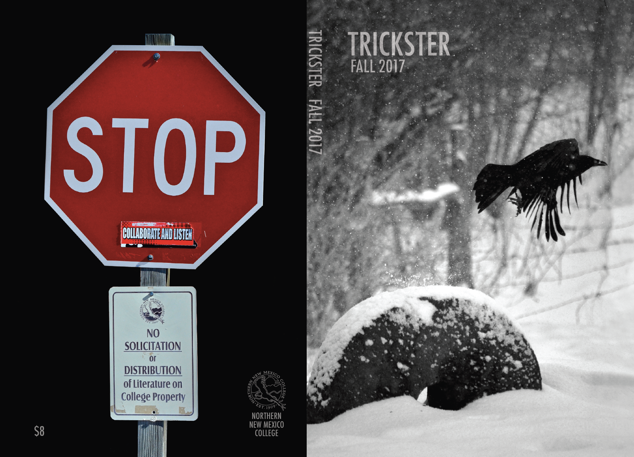 Trickster is a literary journal published yearly by Northern New Mexico College and edited by students. We are looking for unpublished poetry, fiction, nonfiction, artwork and any combination therein. The landscape and cultures of northern New Mexico shape our perspective, but we are excited to accept original work relating to our current theme.